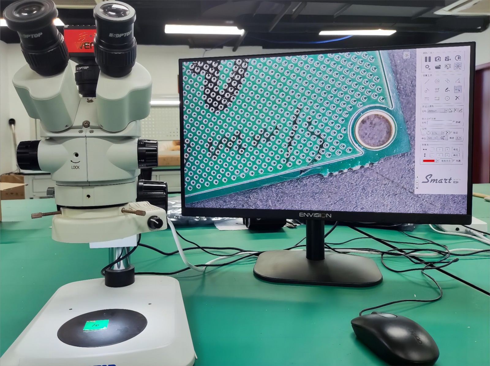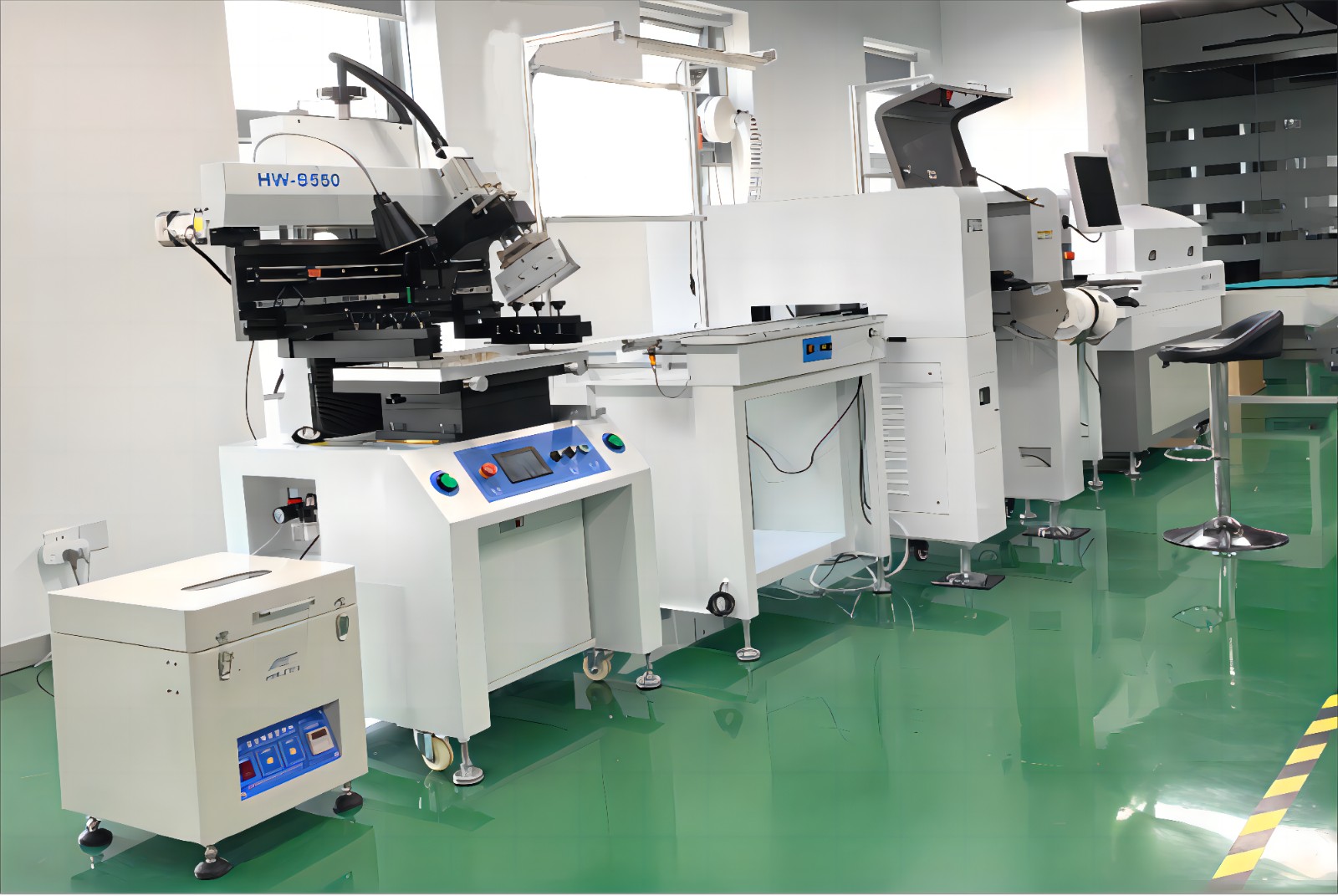 公司于建有SMT生产线,生产环境满足温度、湿度、洁净度等要求。产线主要包括锡膏搅拌机、半自动印刷机、全自动4头贴片机、三温区回流焊炉、可视化显微镜、电子防潮箱、超声波清洗机等生产、检验及存储设备,产线设备齐全,可保证产品的可靠生产。